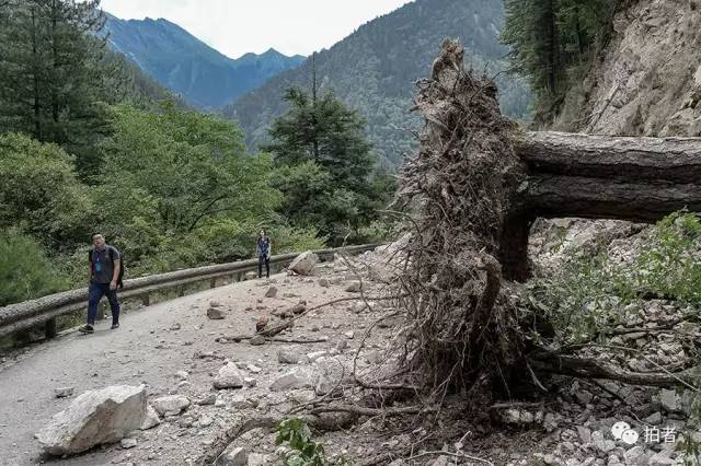 下图为诺日朗瀑布往熊猫海方向的道路被塌方阻断,车辆无法通行↓
