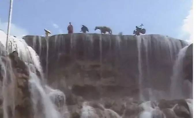 垮塌严重的诺日朗瀑布,单说名字,或许很多人并不熟悉,但如果提到86版《西游记》片尾曲《敢问路在何方》中,唐僧师徒四人从瀑布上走过的画面就是取景于此时,一定能唤起你的记忆↓