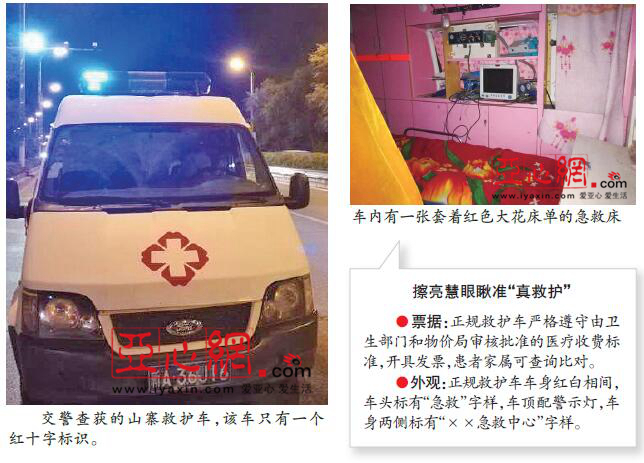 “按照规定,正规的救护车辆在落户时,不但与普通车辆性质不同,而且还须在医疗部门登记备案。”罗军说,从今年年初开始,卫生、交警等多部门联合对急救车辆的严查严整行动,要求救护车必须申请、持有相关部门颁发的通行证方可上路,否则将被视为“黑救护车”。