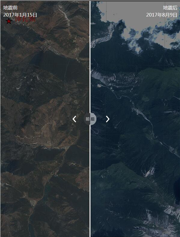 原标题:四川九寨沟地震前后遥感影像对比