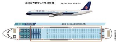 新京报记者查询南航官网发现,A321机型分为公务舱、明珠经济舱、经济舱三种类型,其中公务舱有12个座位,在前3排;明珠经济舱有24个座位,在31至34排;经济舱有143个座位,为35排至58排。第31排紧挨着公务舱。