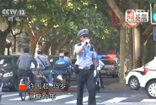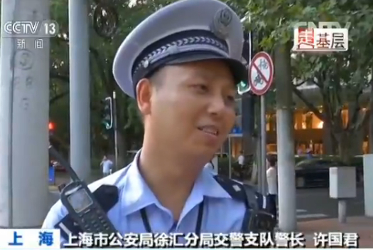 上海市公安局徐汇分局交警支队警长 许国君:出示一下你的牌照。