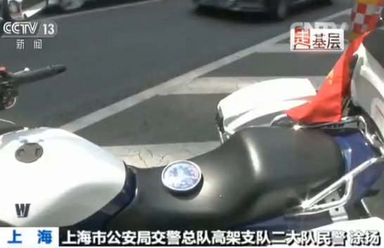 上海市公安局交警总队高架支队二大队民警 涂扬:因为这个温度太高了,坐上去烫屁股,这个手摸上去都比较烫。一般情况像这种温度,下来一分钟不到,这个坐垫就不能坐了,这个时候洒点水,这个温度会一下子降一半。