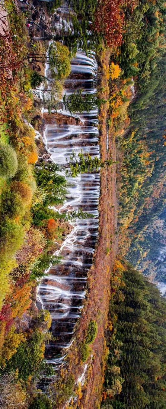 (请将手机横屏观看;航拍为我们提供了一个难得的机会,将瀑布与上方的湖泊一起收入视野;诺日朗上游的诺日朗群海是钙华物质的重要来源,摄影师@魏炜)