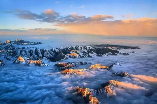 (从成都飞往九寨沟九黄机场途中拍摄九寨沟周边区域,山峰为岷山山脉;摄影师@Sandoy)