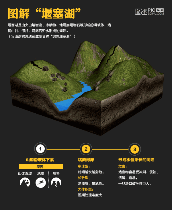 原本色彩斑斓的多个高山湖泊坝体坍塌