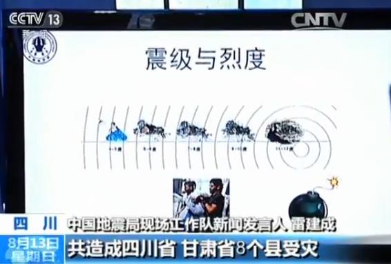 中国地震局现场工作队新闻发言人 四川省地震局副局长 雷建成:此次地震最大烈度为Ⅸ度,等震线长轴总体呈北北西走向Ⅵ度及以上区域的总面积为18295平方公里共造成四川省、甘肃省8个县受灾包括四川省阿坝藏族羌族自治州九寨沟县、若尔盖县、红原县、松潘县,绵阳市平武县甘肃省陇南市文县,甘南藏族自治州舟曲县、迭部县。