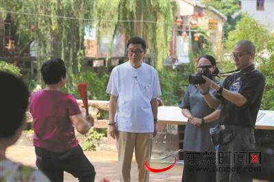 知名文化学者、节目主持人王鲁湘在节目中带领观众走读东莞茶山南社 图/记者 陈栋 摄