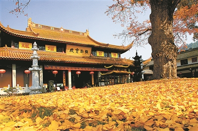 雪窦寺落叶美景。(奉化区委宣传部 供图)