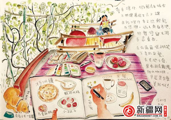 (记者史漓莎)用缓慢的速度“边游边画”,感受截然不同的地域风情和民族文化,将一路见闻和体验带回宝岛分享给想要游大陆的年轻人,这是喜欢旅游的40岁台湾插画师张真辅首次来新疆的目的。