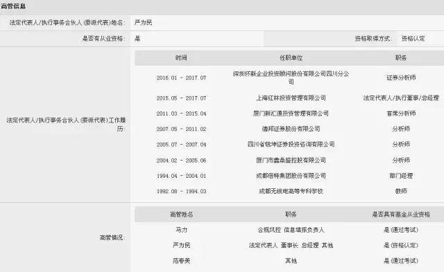 严为民曾先后担任成都倍新投资咨询公司总经理、首席分析师等,现任上海红林投资法人、执行董事及总经理。据基金业协会数据显示,上海红林投资登记备案时间为2014年4月29日,在协会登记备案私募产品有四只,其中包括西安信托-吾股丰登1号、吾股丰登2号、国金红林1号资管计划、红林2号私募基金。