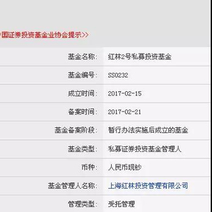 刚满半岁,产品清盘据基金业协会数据显示,红林2号私募基金成立于2017年2月15日,2017年2月21日登记备案。实际上今年2月底的时候,此时的沪指处于3250点上方正要冲刺3300点的时候,严为民旗下的红林2号私募基金刚成立就立即投入到轰轰烈烈的抄底运动中,据统计,红林2号出现在四只个股的一季报中,一季度末时红林2号合计持有近1.4亿的股票市值。