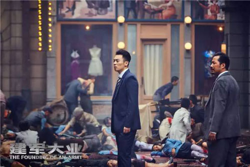 所以,不同于以往塑造革命领袖那种镇定从容的既定风格,对于《建军大业》中的周恩来,朱亚文着重表现的是“总理在特殊时期面临决断时的紧张感”。电影中既有周恩来与国民党军官斯烈谈判时的胆识,“四一二大屠杀”后雨中环视的痛心,也有与毛泽东太湖谈心时对新路线由疑虑到认同的转变。对此朱亚文的理解是“《我们的法兰西岁月》里的时期还有一些架构理想的过程,到了《建军大业》这个时期,国共两党斗争日趋白热化,是直面牺牲和死亡的一个阶段。”“《建军大业》这个时期的总理可能革命浪漫主义色彩会少了很多,但是革命的坚定性和血性会更明确。”