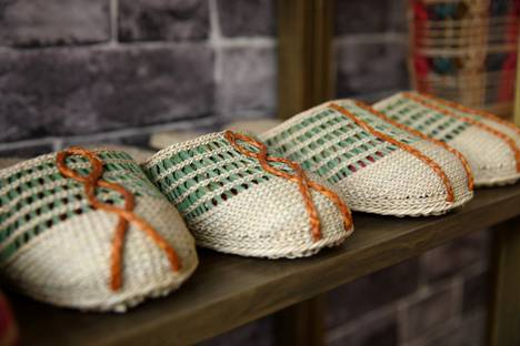 上海嘉定的徐行古镇里,黄草编织工艺有近千年的传承历史,是国家级非物质文化遗产。自古以来,徐行人利用随处可见的黄草茎秆,经过去苋、开劈、染色、搓绞、模具、编织等,制作成为拖鞋、提包等生活用品,美观实用,成为一方名产。
