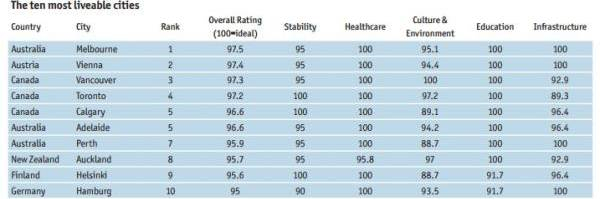 昨日,经济学人智库发布了2017年全球最宜居城市排行榜:澳大利亚墨尔本7年蝉联冠军。亚洲方面,新加坡排名首次超越中国香港,香港跌出亚洲前三,排名45。