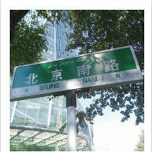 记者从陈建立拍摄的图片中也发现,像“厦门路”标示着东西走向,路牌的背景色就是蓝色。而“北京南路”是南北走向,背景色就是绿色。