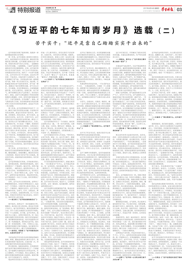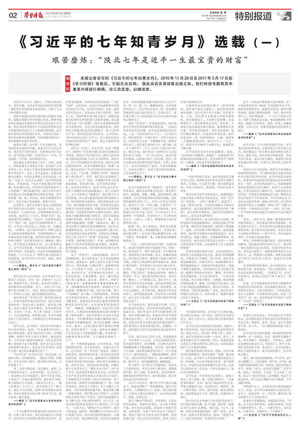 学习时报四整版报道习近平的七年知青岁月出版