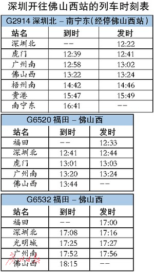 深圳高铁可直达佛山