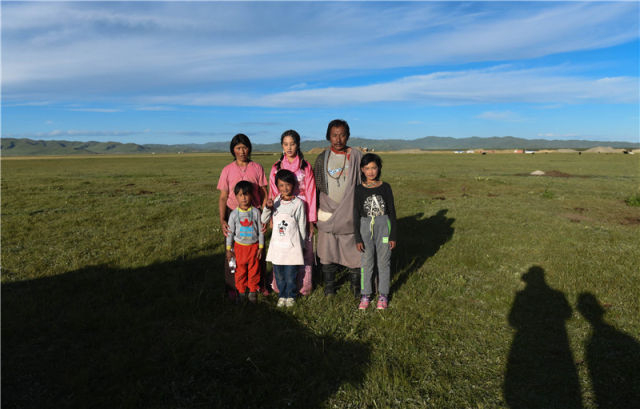 8月13日,德庆玉珍(后排左二)和家人拍照留念。 新华社记者 黄晓勇 摄