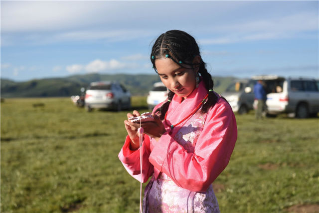 失明没有让她消沉,德庆玉珍在草原的阳光下成长,听觉也变得异常敏锐,她能分辨风吹过牧草的声音。“您只要说一句话,我就知道您有多高。”德庆玉珍这个听力“小绝活”经常让来访者惊讶不已。
