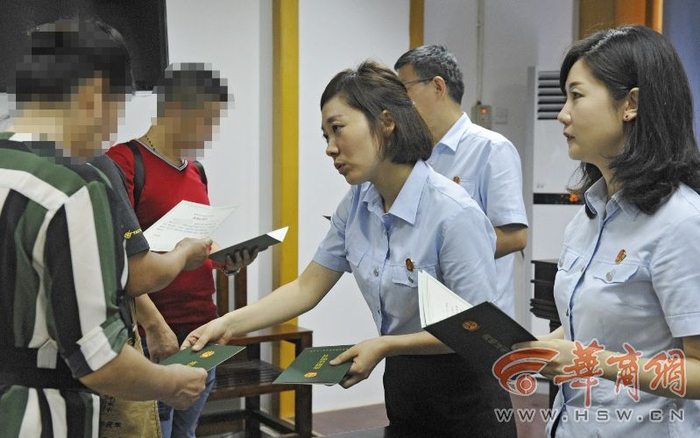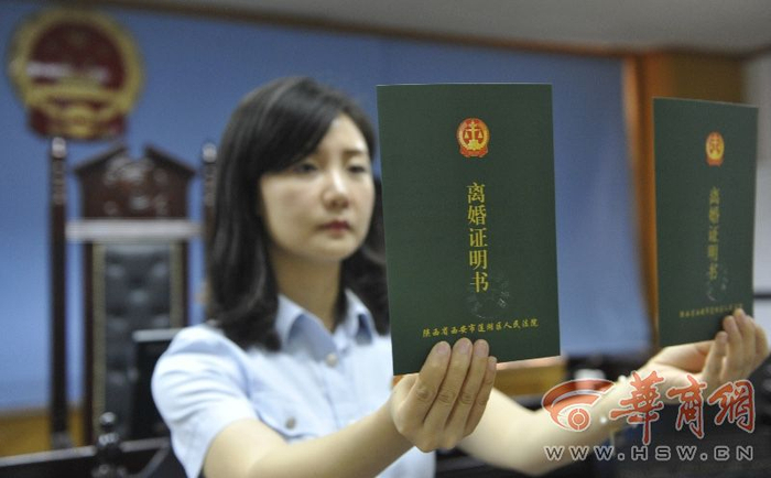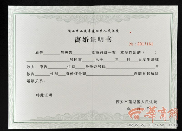 昨日上午,多起离婚案件的当事人从莲湖区法院领取了离婚证明书,这也是该院首次给离婚案件当事人出具该种证明书。