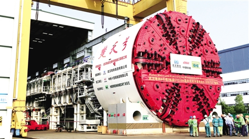 建设者为武汉地铁8号线长江隧道量身定制的盾构机。 于景信摄