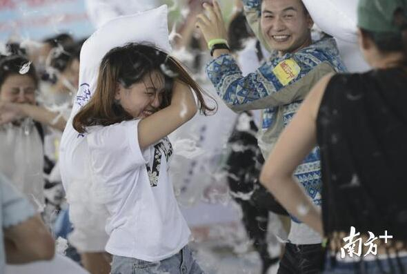 枕头、水枪齐上阵,东莞观音山上演“减压大战”