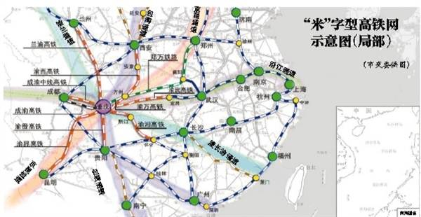 来自市交委消息称,根据《重庆市中长期铁路规划(2016-2030年)》,重庆正在规划“米”字型高铁,即重庆至成都、兰州、西安、郑州、武汉、长沙、贵阳、昆明等8个方向的“米”字型高速铁路网。目前,重庆到武汉的渝武高铁前期工作正在进行,预计2020年后开建。