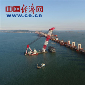由中铁大桥局打造的“大桥海鸥号”起重船正在吊装平潭海峡公铁两用大桥首孔简支钢桁梁。 张静摄