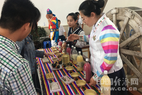 图为延吉西站候车大厅中,工作人员在民俗区向旅客们展示朝鲜族特色打糕和米酒。经济日报-中国经济网记者刘潇潇/摄