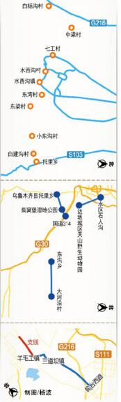 第一条是新建达坂城区天山野生动物园到水区石人沟27公里的二级公路;第二条是从国道314线到柴窝堡湿地公园(柴窝堡湖)至乌鲁木齐县托里乡,联通环南山旅游公路,全程30公里,属改扩建二级公路;第三条从东沟乡到大河沿村,连接车师古道分别到达昌吉州吉木萨尔县、吐鲁番市大河沿镇,全程34公里,属改扩建三级公路。