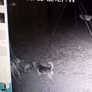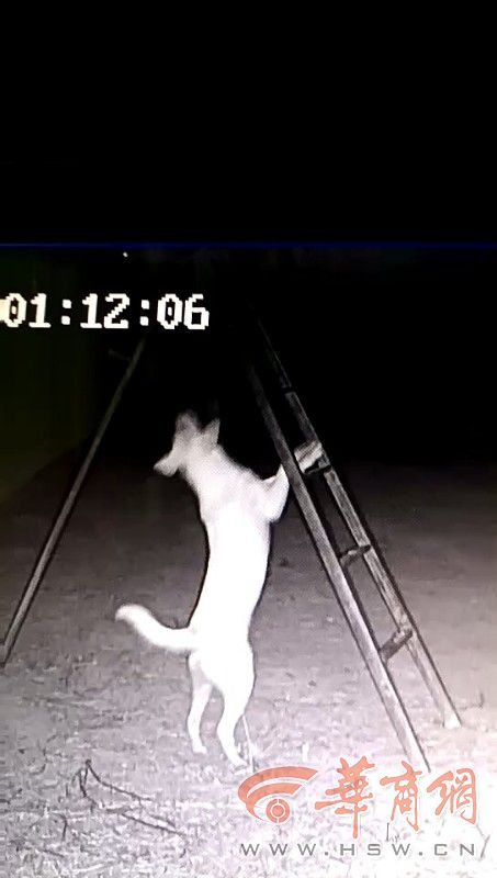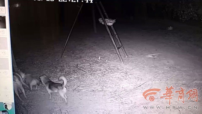 神秘动物曾一度在村里引起恐慌,为此,礼泉县公安局史德派出所民警连续几天晚上在养鸡场守候,但是没有任何收获。8月18日,为尽快查明不明动物身份,民警在养鸡场安装了监控摄像头,并专门在架子上留了几只鸡做诱饵。随后的监控视频里,出现了神秘动物的身影。“当天晚上10点多,监控视频里出现了两只野狗,进入鸡场后就开始撕咬。”史德派出所椅民警介绍。