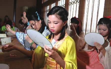 8月27日下午,湘绣爱好者参加穿针、浮针、绣团扇比赛。记者 田超 摄