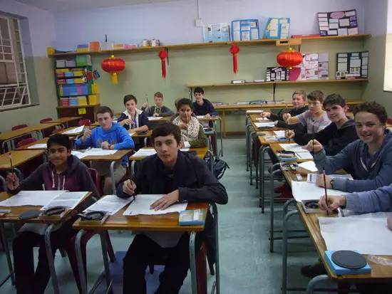 2015年9月26日,南非威斯福中学孔子课堂首届“孔子学院日”活动举行,图为参加书法讲座的部分学生在练习。