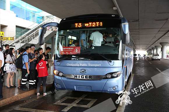 在T3A航站楼L1层9号门的中转摆渡车乘车处,记者看到一辆中转摆渡车刚发出,不到1分钟时间又有一辆中转摆渡车进站侯客。重庆两江公交公司相关负责人告诉记者,根据客流情况,高峰期他们实行了滚动发车,需要中转和走错航站楼的旅客,可以在T2航站楼国内到达4号、7号门和T3A航站楼L1层9号门免费乘坐中转摆渡车进行航站楼之间的中转,从T2航站楼到T3A航站楼的平均车程在20分钟左右。