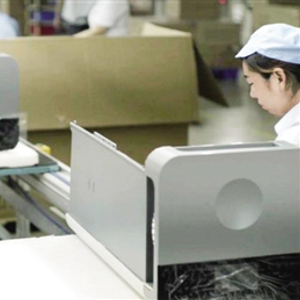 北京三五二环保科技有限公司的产品因洁净空气量(CADR)值高而受到消费者关注。图为公司旗下空气净化器制造厂商的整机组装生产线。 记者 陈莹莹摄