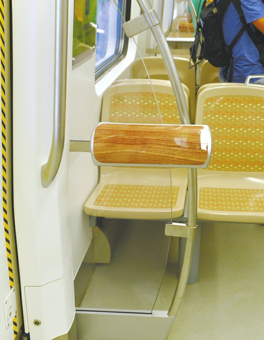 除了站台设计,这样的贴心设计还有很多。无障碍卫生间设置有紧急呼叫按钮,方便残障人士在突发事件时紧急呼叫;在上下楼梯扶手处设置有盲文,方便盲人乘客触碰感知,判断上下行方向。此外,在有条件的站点均设置了便民服务区。