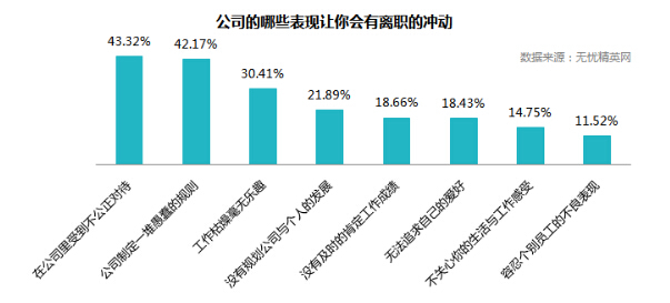 不同于善于抗压与忍耐的70、80后,目前职场的主力军90后更关注自我的职场感受。在公司的哪些行为让人有离职冲动的调查中,“受到不公正对待”、“公司制定愚蠢的规则”与“工作枯燥毫无乐趣”,三个选项遥遥领先。