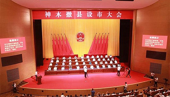 7月23日,神木举行“撤县设市”大会暨授牌仪式。(来源:西部网)