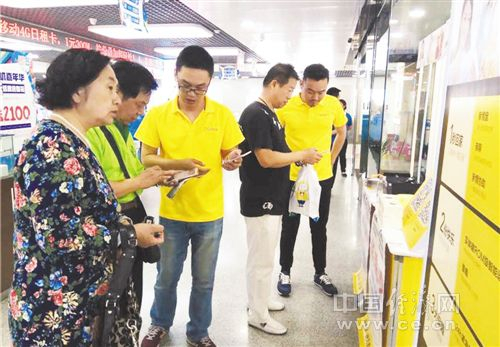 营业厅内,九爱销售人员向顾客介绍手机产品。经济日报记者 周明阳摄