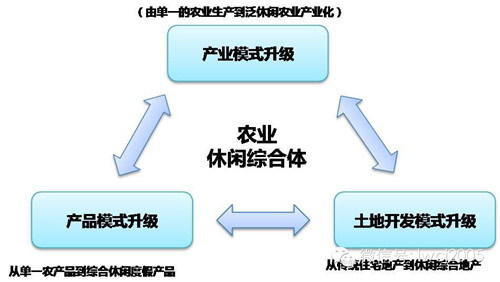 农业休闲综合体是产业模式升级、产品模式升级、土地开发模式升级”三大升级共同作用的结果。其产业链的扩展与构建是农业核心竞争力的物质基础。其重点内容是综合体内的生产与加工业转型升级,服务业丰富发展,在农业生产、农产品加工、服务业紧密融合的基础上再派生新产业。