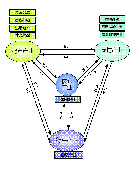 支持产业是指直接支持休闲农产品的研发、加工、推介和促销的企业群及金融、媒体等企业;