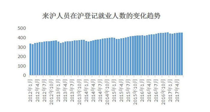 日前,上海市人力资源和社会保障局就业促进中心发布了《上海市来沪人员就业状况报告(2017)》,以上海市劳动用工登记备案信息为基础,结合抽样调查数据,研究分析了进入本市人力资源市场的来沪人员的就业状况。