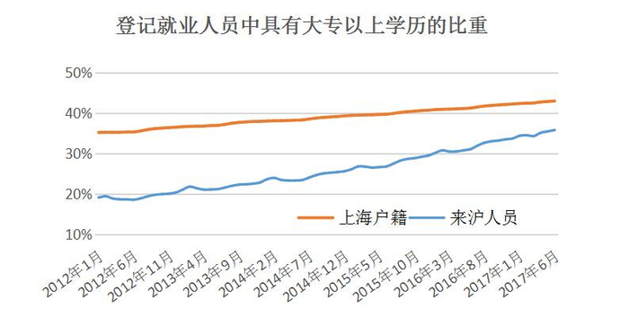 随着上海经济社会的持续健康快速发展,越来越多受过良好教育且有创新力的外省市户籍人员来到上海工作、生活、发展。专家分析指出,上海产业结构调整、经济转型升级的不断深化,对从业人员的素质提出了更高的要求。从未来发展趋势看,上海企业对于知识型、技能型劳动者的需求将不断增加。