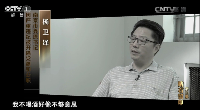 “也应该说一开始对这种豪华的东西,我们也是很反感的。酒我也是不喜欢的,过年我在家一滴酒都不喝,后来就变成了一种习惯了,甚至我请人的时候我不喝酒好像我不热情,然后他请我吃的时候,我不喝酒好像不够意思。”江苏省委原常委、南京市委原书记杨卫泽如是说。