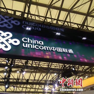 资料图:中国联通展台logo。中新网 吴涛摄