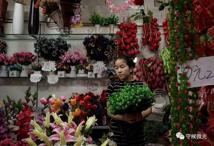 8月25日,天意新商城,来自安徽芜湖的代女士在自家的假花店前。
