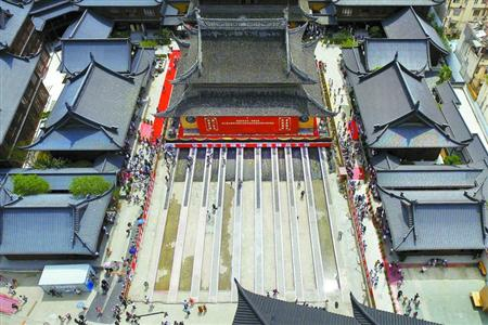 据悉,在大雄宝殿平移之后,殿前将加盖钟鼓楼及观音殿,统一江南《营造法原》殿廷建筑风格,使得玉佛禅寺的建筑布局更加完整。“当然,即使加盖殿堂,大雄宝殿前的公共空间还是比原来翻了1倍多。”