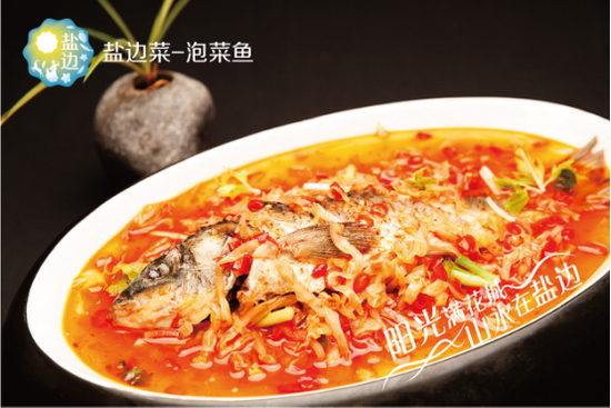 而水菜系列,则以“鱼”为鳌头。盐边境内大小河流数十条,父亲山、母亲河,盐边的水给盐边人民提供了钟灵毓秀的美景,也提供了丰富的鱼类资源。人们选用雅砻江流域出产的江鲢、细鳞鱼、大口鲶鱼,用豆花、豆瓣、小米辣海椒、红花椒或青花椒、生姜、大蒜、葱、盐、味精、鸡精为佐料,精心烹饪成鱼元子、鱼豆花、清汤鱼、红烧鱼等鲜美的菜肴。