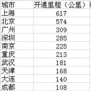 地铁通车里程前十名城市